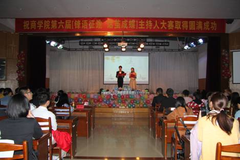 在秀山校区老大学生活动中心举办“锋语征途,话茧成蝶”第六届杯主持人大赛决赛。院党委副书记、副院长张虎,各年级辅导员、校院学生会主席、部分学院优秀主持人代表以及部分大一新生出席了此次活动。