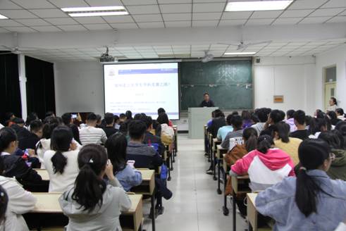 周世军首先强调了学科竞赛的重要性,它是是专业理论与实际运用的结合,着重介绍了几类竞赛,如数学建模大赛、“创新创业”全国管理决策模拟大赛、挑战杯竞赛等热度高、影响力大的学科竞赛。同时,他告诫同学们不能盲目参加各种竞赛,要利用课余时间多了解各种竞赛的相关内容,为之后参与竞赛活动打下良好的基础。随后,周世军详细介绍了参与竞赛的过程,强调选题的新颖,要与时事热点相结合,在选题确定后要先设计调查问卷,要进行社会调研,之后就开始整理分析数据,完成参赛作品,作品通过校赛、省赛后,才能进入全国总决赛。最后,周世军提出了几点建议,一是多读名著,尤其是经济学名著;二是多听讲座,积极参加学校学院组织的各类讲座;三是多看网站教学视频课程;四是多参与社会实践活动,不断提高自身的能力。