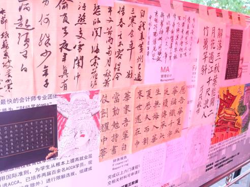 较高的文化水平。此次大赛共有三十位同学以及两个班级获得了奖项,其中市183班获得最佳优秀宣传团体奖,融182班获得最优团队奖,源181班李灵通同学获得了软笔组一等奖,贸181班汪佳同学获得了硬笔组一等奖,会合181班吴忠雯同学获得绘画组一等奖。