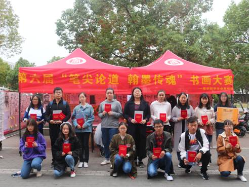 在秀山校区六食堂楼下举办了第六届“笔尖论道,翰墨传魂”书画大赛。