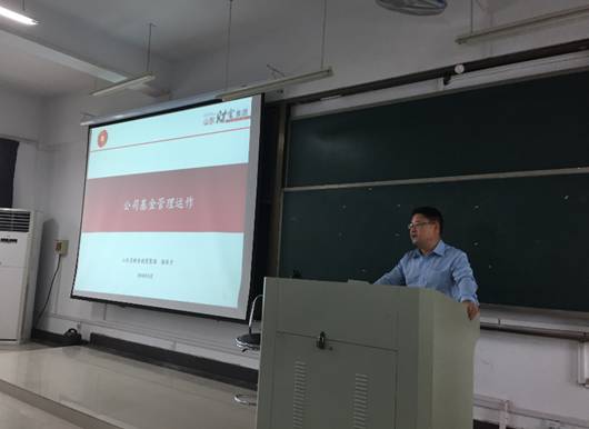企业家大讲坛,做题为“公司基金管理与运作”讲座,讲座由会计硕士教育中心主任魏立江主持,会计硕士研究生聆听了讲座。