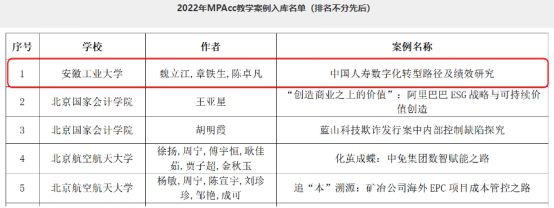 魏立江等老师撰写的《中国人寿数字化转型路径及绩效研究》案例正式收录入库(相关链接//rmbs.ruc.edu.cn/xwzx/tzgg/7c364d4d107d441c85ededecbbae6195.htm),展示了学院持续推动案例开发和案例教学工作取得的重要成果。