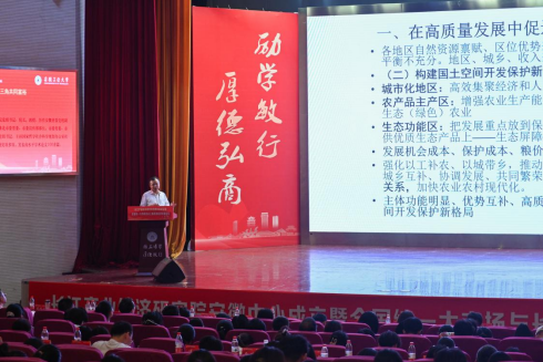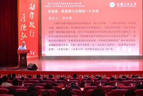 党委书记洪功翔教授作了题为《为什么是安徽率先跻身全国第一方阵》的主旨报告。洪功翔教授基于安徽经济发展历程,从工业发展、中心城市带动、创新驱动引领等方面,对为什么是安徽率先跻身全国第一方阵进行了详尽的分析。并根据当前发展面临的多重机遇和挑战,对安徽经济发展的前景进行展望。让与会者备受鼓舞,对安徽经济加速崛起充满信心。