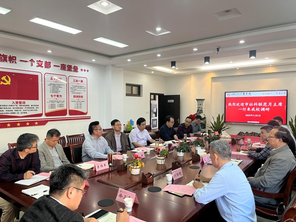 11月3日下午,市委宣传部副部长、市社科联主席花月,市社科联三级调研员张跃武,市经济学会会长洪绍明,市社科联办公室副主任王明银等一行来校调研智库建设工作。科研处、人力资源处、娱乐城