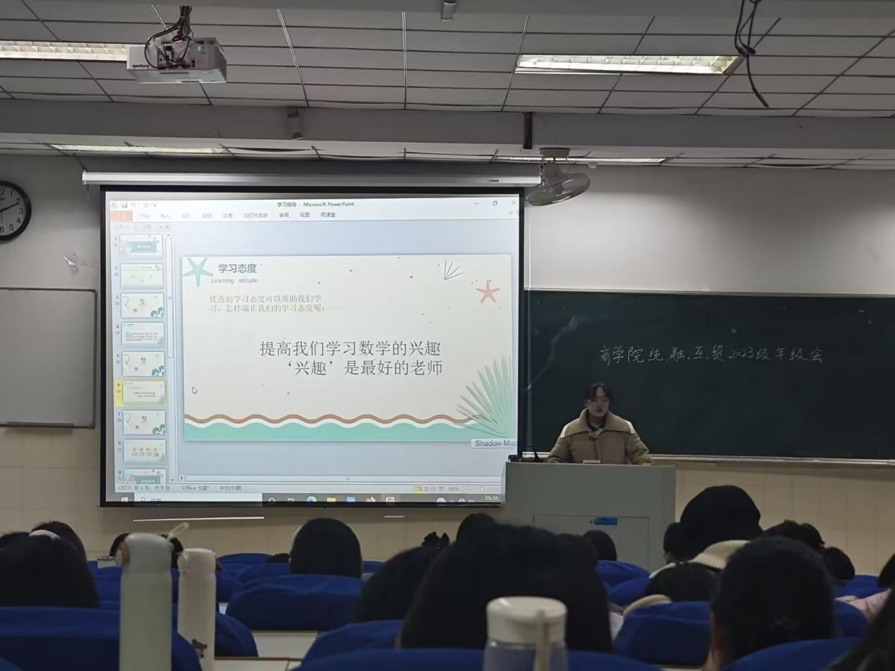 会议分析了此次期中考试的症结所在。贸231班施星雨、贸232班唐超分别从“提前学、学什么、怎么学”以及“有目标、有计划、有总结、有反思,要转变思路,在有限的时间点将基本知识点学清楚”等方面进行分享。参会同学也结合自身学习经历,就如何转变学习方式,更好提高学习成绩展开交流研讨。