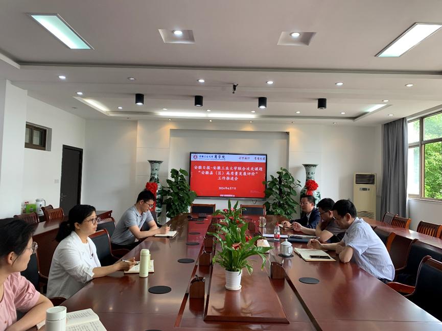 联合攻关课题“安徽县(区)高质量发展评价”研究工作推进会。院党委书记杜飞、院长章铁生、副院长周世军、相关研究领域的中青年骨干教师参会,会议由周世军主持。
