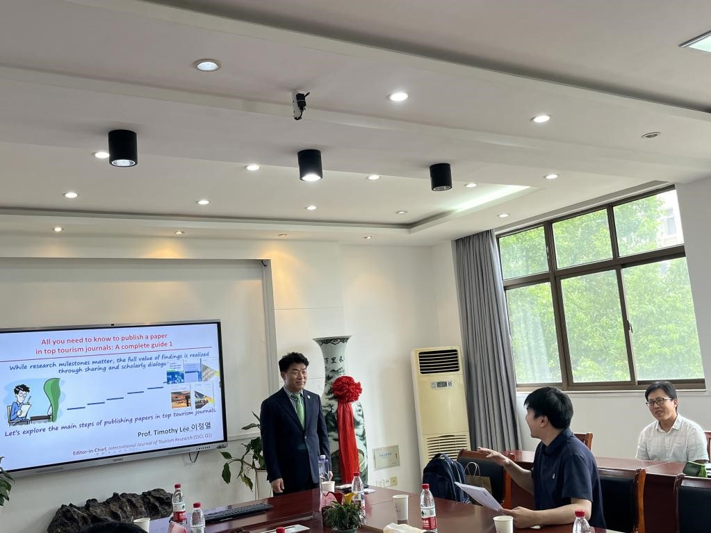 于7月12日下午在汇文楼B304会议室举办了题为《通往旅游顶刊之路:论文发表必知事项》的学术报告。报告由澳门科技大学酒店与旅游管理学院教授、博士生导师、副院长Timothy Lee主讲,活动特邀了江苏理工学院夏仿禹博士与扬州大学胡佳博士出席,娱乐城