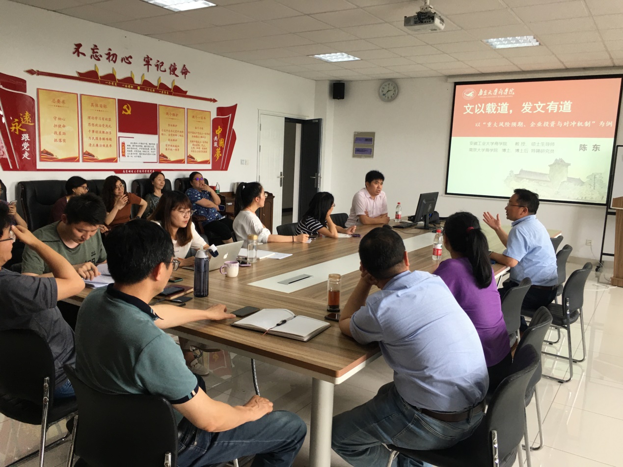 经济系陈东教授应邀做客南京邮电大学经济学院学术讲座,作了“文以载道、发文有道——以‘重大风险预期、企业投资与对冲机制’为例”的主题报告。论坛由南京邮电大学经济学院院长岳中刚教授主持,30余位教师聆听了报告。