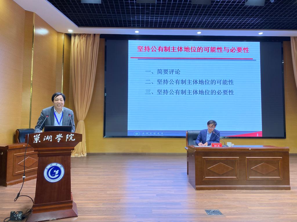 洪功翔教授、陶善信副教授、查会琼副教授、沈宏超副教授和马为彪博士等五位教师应邀参加。洪功翔教授作为特邀专家作了“坚持公有制主体地位可能性与必要性”的大会报告。