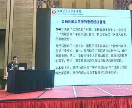 教授江小国受马鞍山市质量协会邀请为全市企业家代表作题为“宏观经济形势与新质生产力要义”的专题讲座,100余位企业家代表参加,马鞍山市市场监督管理局党组成员、副局长张军出席。