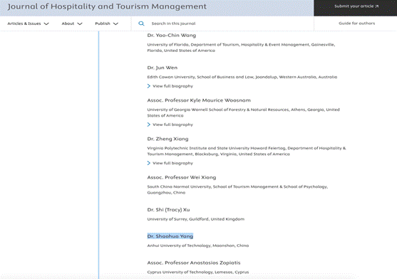 JHTM编委成员名单://www.sciencedirect.com/journal/journal-of-hospitality-and-tourism-management/about/editorial-board