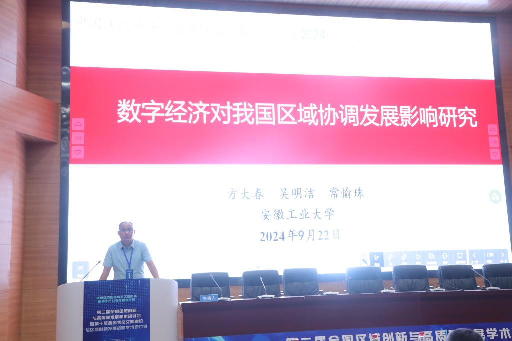 22日上午,方大春教授作了题为《数字经济对我国区域协调发展影响研究》的主题报告,指出在数字经济时代,要进一步推动我国区域协调发展需要在构建数字经济发展合作网络、加快新质生产力布局、提高区域协调发展动能等方面做出努力,得到了与会学者的广泛共鸣与好评。