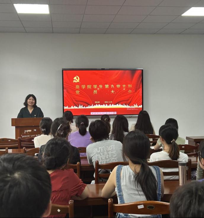 学生第九党支部于汇文楼B114会议室召开支部党员大会,会议由支部书记刘长秋主持。