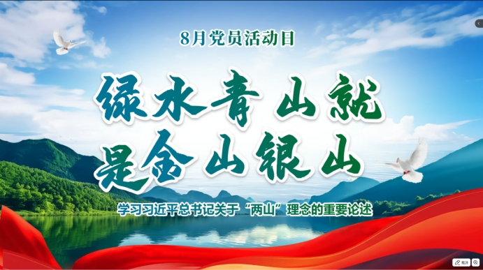 此次党日活动通过理论学习、案例分享和互动交流等多种形式,不仅加深了党员们对“两山”理念的理解,更激发了他们在日常生活中践行生态保护的决心。支部党员纷纷表示将以此次活动为契机,将绿色发展理念融入学习和生活,带动更多人参与到生态文明建设中来。(撰稿:江薇 审稿:肖梦雨 李曼 蒋磊)