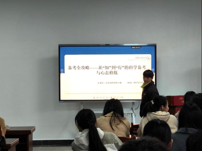 活动聚焦学生普遍关心的升学与就业问题,三位研究生同学分别围绕“院校选择与复试准备”“科学备考与心态调整”“研究生阶段的科研与成长”三大模块展开分享。他们结合自身经历,从目标定位、复习策略、时间管理、资源获取到复试技巧与科研入门,进行了系统而细致的讲解,为在场同学提供了兼具实用性与启发性的经验参考。
