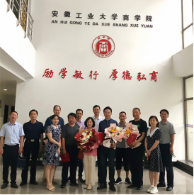 章铁生、顾远代表学院向5位退休教师颁发了退休荣誉证书并敬献鲜花。最后与会的领导、教师代表与荣退教师们进行了合影留念。