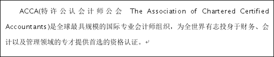 ACCA自1904年成立,作为最早进入中国的国际专业会计师组织,ACCA目前在中国拥有超过25,000名会员及超过108,000名学员(大陆地区7000人),并在北京、上海、成都、广州、深圳、沈阳、青岛、武 汉、长沙、香港及澳门共设有 11 个办公室。 ACCA课程全面、完善及先进兼备,现已被联合国采用作为全球会计课程的蓝本,是全球适用范围最广、认可程度最高的会计师专业资格之一,有财会行业的“MBA”之称。