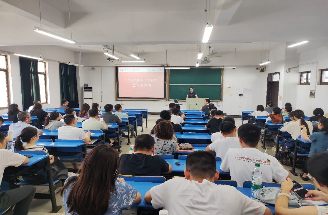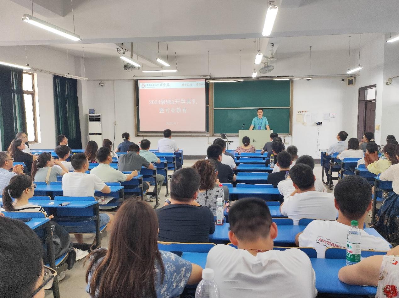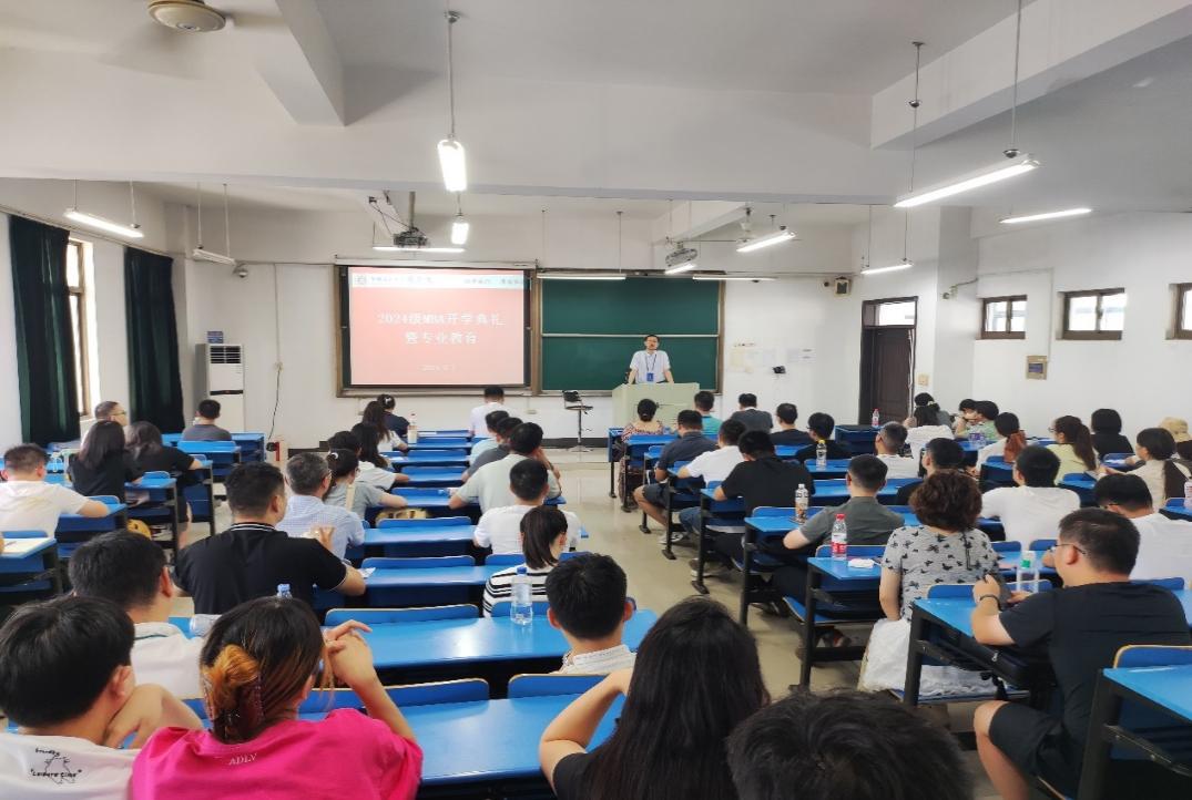 的起源及发展历程、专业构成、师资队伍及MBA办学成果等方面,向2024级MBA学员作了详细介绍,并结合自身的求学经历及学习感悟,希望学员之间、学员与老师之间多沟通、多交流、共同探讨,明确目标,规划方向,提升学术水平。