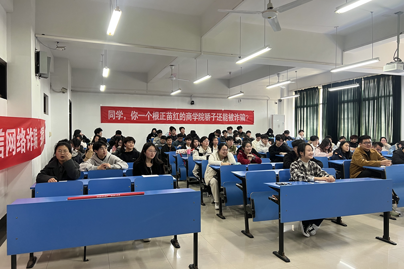 学院各年级、各班级以“防范于心,反诈于行”为主题,召开了主题班会、年级会,辅导员(班主任)从电信网络诈骗的常见手段、防范电信网络诈骗的建议措施等方面作了宣讲指导,同时结合最近发生在身边的实际骗局案例,提醒同学们要防范兼职刷单、杀猪盘、办理贷款、投资理财、冒充购物客服退款、买卖游戏装备等诈骗手段,告知同学们甄别办法,进一步增强“辨识力”。