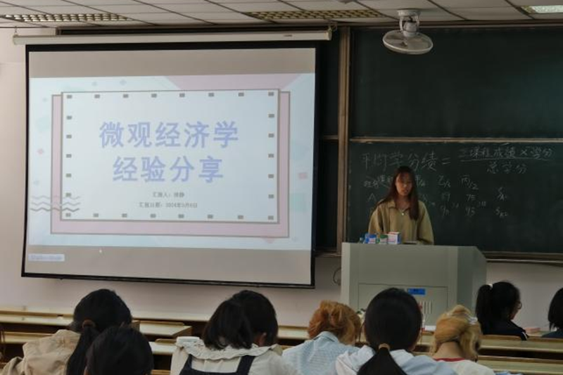 会上,学长学姐们以幻灯片和口头分享的形式,分享了自己关于微观经济学,高等数学和线性代数的学习心得,内容涵盖学习方法、考试技巧等方面的经验。同时,他们还结合自己的学习实例指导学弟学妹们如何制定学习计划、如何调整学习状态。参会同学纷纷表示自己受益匪浅,收获颇丰。在随后的提问环节,大家踊跃发言,向主讲人们提出学科时间平衡、笔记整理频率等问题,主讲人们也结合自身经验,为同学们提供切实有效的建议。