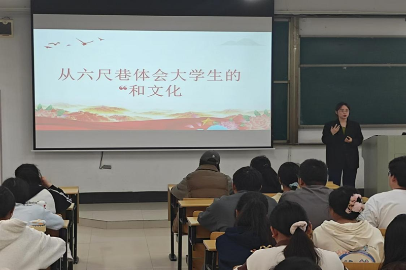 于汇文楼D105召开“从六尺巷体会大学生的‘和文化’”主题的宣讲活动。活动由辅导员肖梦雨老师主讲。