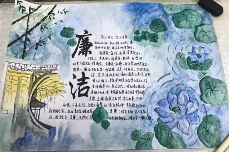 本次活动从线上征集以“廉洁文化”为主题的书法、手抄报、宣传海报等三种形式的作品。在征集的作品中,学生以笔墨传情,书写廉洁之道;用丰富的色彩和生动的画面,融入廉洁文化,让人耳目一新。娱乐城