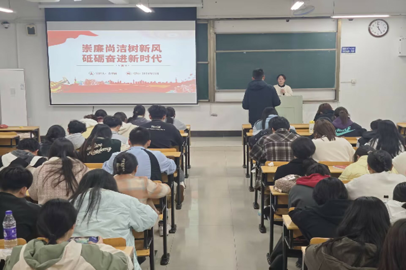 于汇文楼D105开展“持廉洁之笔,绘成长之风”主题宣讲活动。院学生干部、入党积极分子代表参加此次活动,辅导员肖梦雨老师担任主讲。