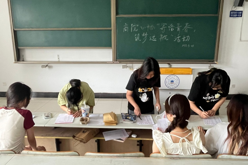 活动一经发布,便获得全院同学的热烈响应。大家纷纷拿起纸笔,将对毕业生的不舍与祝福倾注于字里行间:有人用幽默诙谐的语言回忆与学长学姐相处的难忘瞬间,有人以真挚的话语分享对未来的展望,还有同学在卡片上绘制可爱的插画,让祝福更添灵动色彩。活动期间,协会共收到数百份饱含深情的贺卡与信封,每一份寄语都承载着不同的故事与心意,生动诠释了校园中团结友爱的温暖氛围。这些满载祝福的信件将被精心打包,送到毕业生手中,为他们即将开启的人生新旅程注入力量。