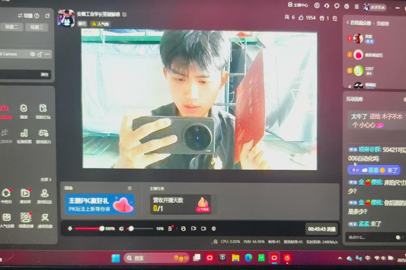 该科普队突破传统模式,以抖音直播为核心,打造“学长学姐视角 + 沉浸式体验”特色服务。直播中,成员分工协作:专业讲解组化身“解码员”,关联自身经历,深度拆解安工大一流本科专业与重点学科,从课程、实践到就业,用案例消除考生对专业的迷茫;校园体验组开启“云游览”,带领观众走访实验室、图书馆、食堂及宿舍,让家长和考生直观感受校园氛围;答疑互动组聚焦分数匹配、志愿梯度等高频问题,结合招生手册与亲身经验,精准解答。