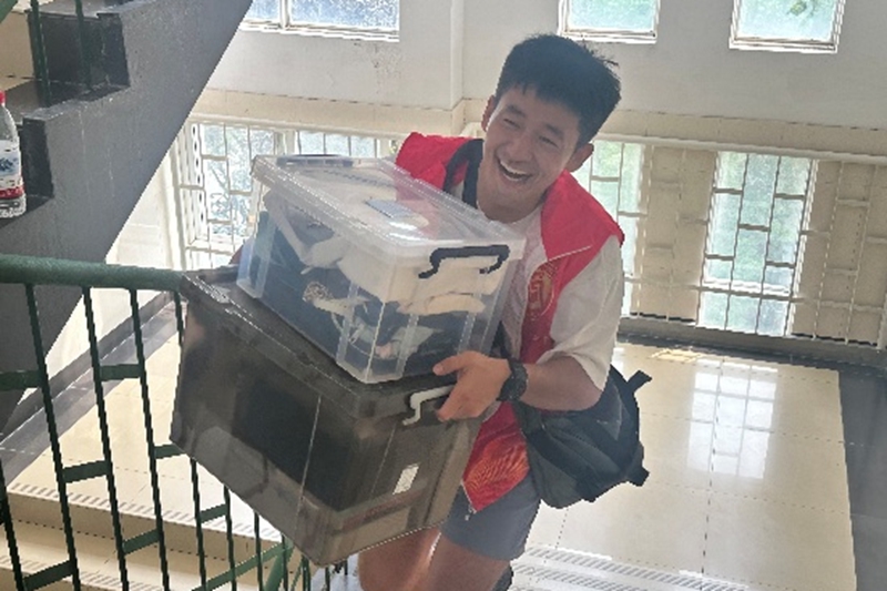 志愿者们身着统一服装,成为迎新现场最亮眼的风景线:从校门口的“一对一”引导,到报到点的材料审核、信息录入;从主动支援其他学院的行李搬运,到耐心解答新生及家长关于“培养方案”“宿舍安排”“校园生活”的疑问……他们用细致的服务、饱满的热情,传递着商院的“温度”。正如志愿者说:“我们是新生的‘第一盏灯’,要让他们刚进校门就感受到家的温暖。”志愿者扛着行李穿梭在校园,汗水早已浸透了马甲。尽管累得衣衫紧贴后背,他们的笑容始终明亮,因为这汗里藏着帮人的甜,这笑是青春里最动人的温暖。